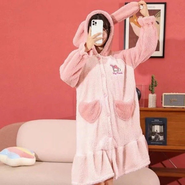 Batas Polar de dos piezas con pantalón largo ,con capucha , con bolsillos delanteros y los puños