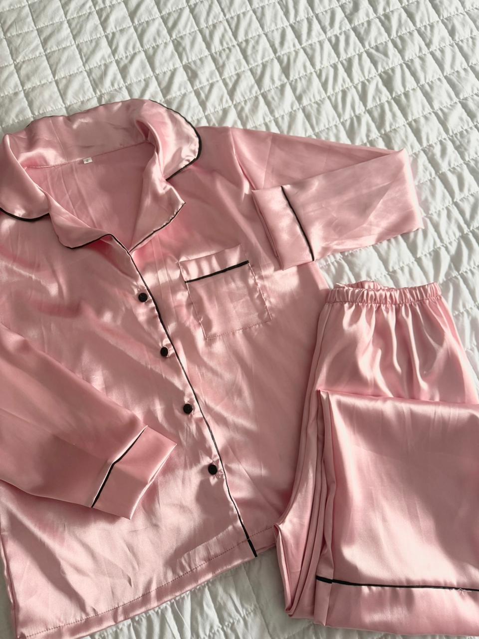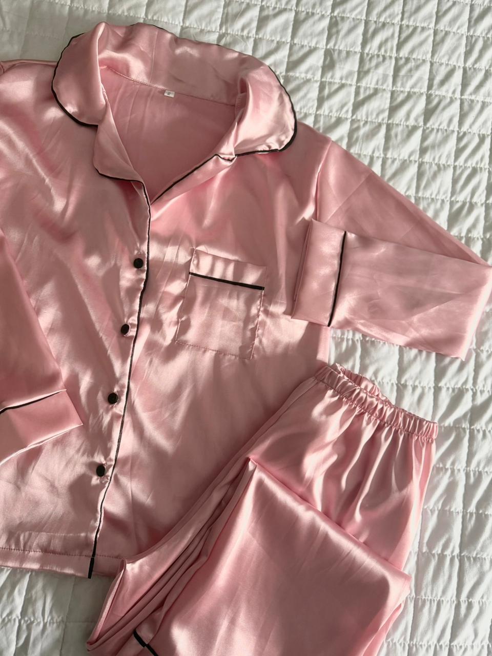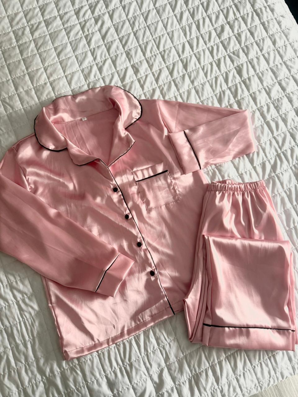 Pijamas largos camiseros confeccionados en saten tela premium!