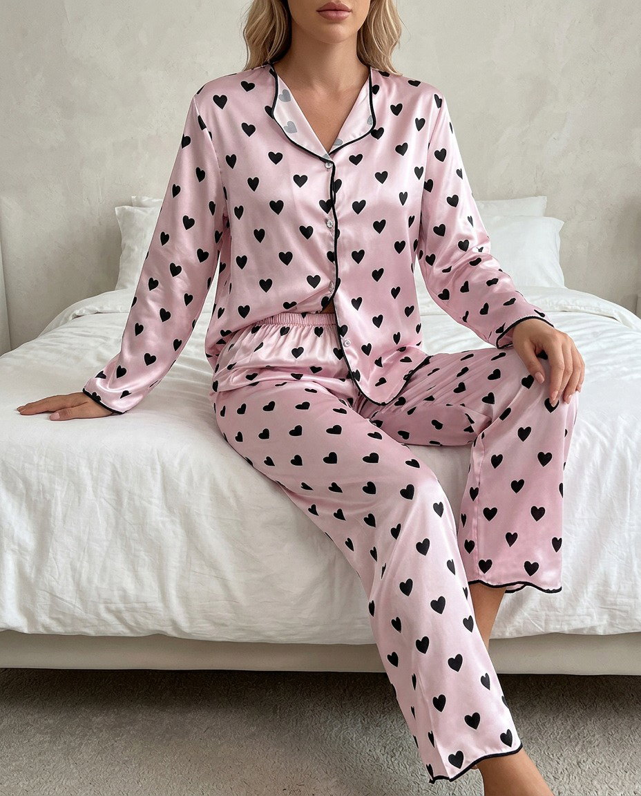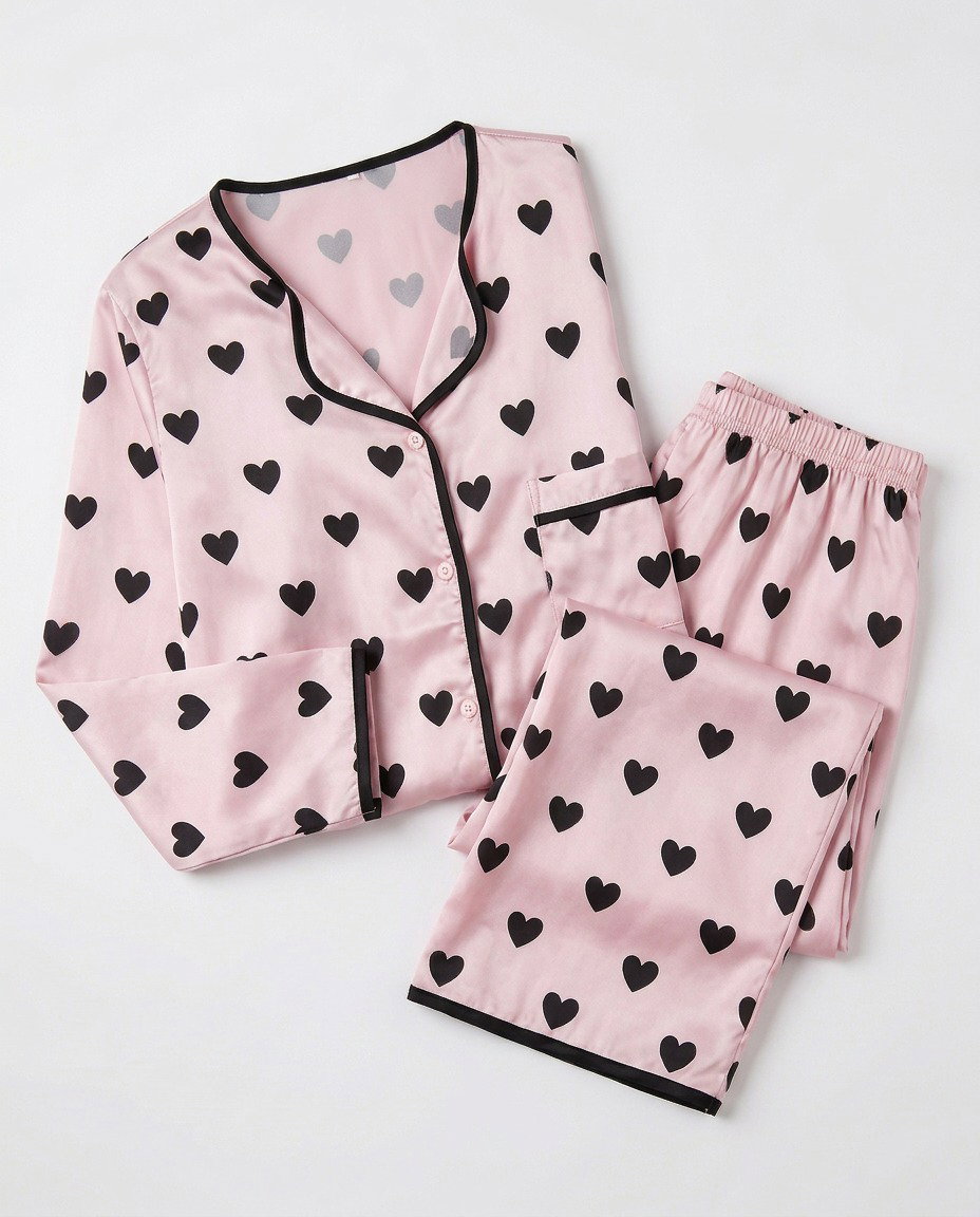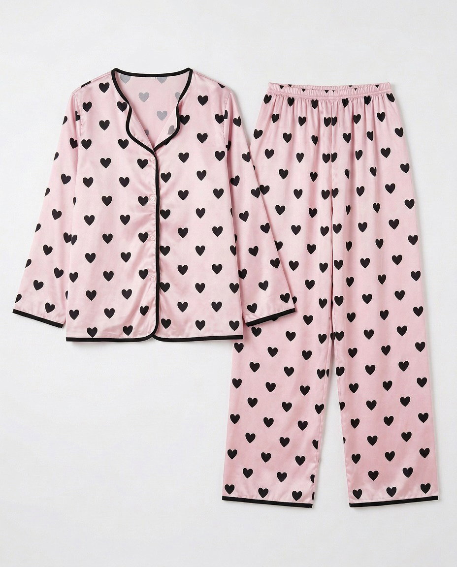 CAMISERO LARGO SATEN IMPORTADO ROSA CORAZONES