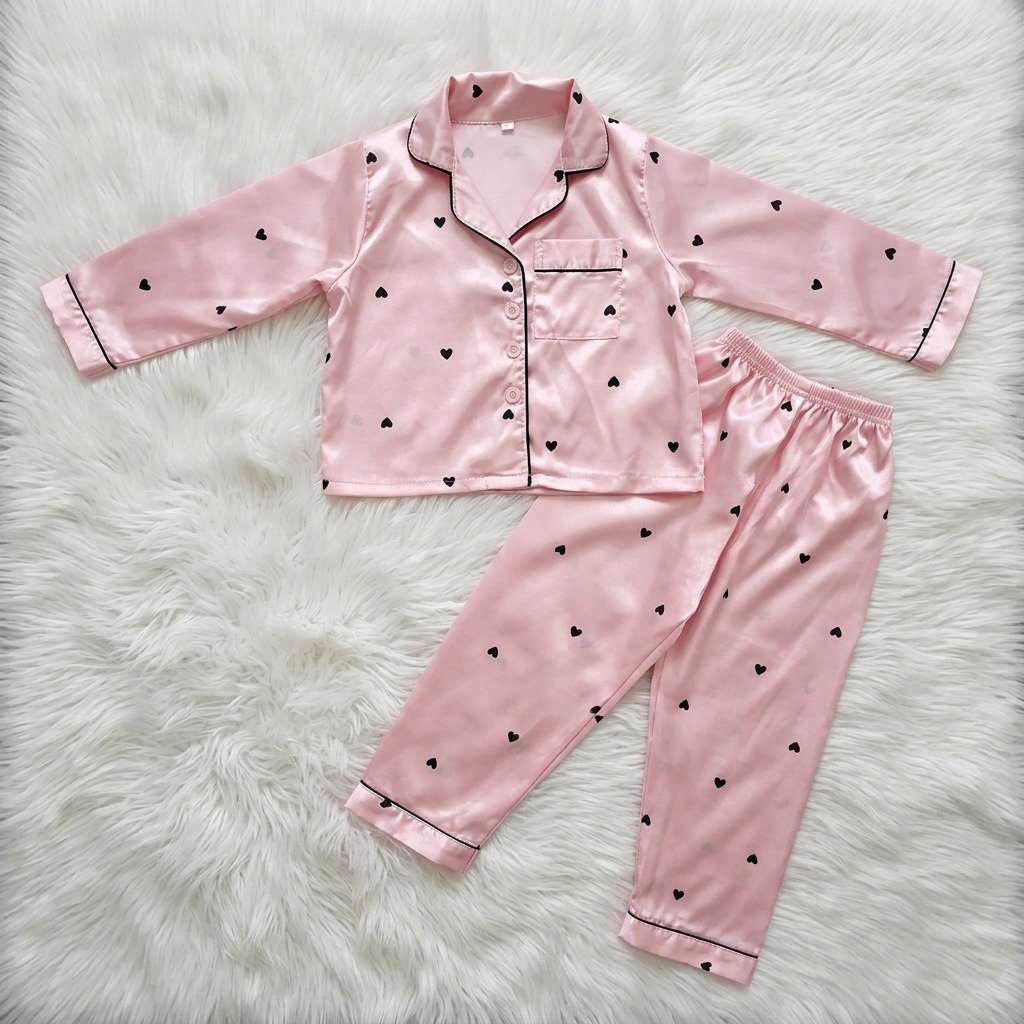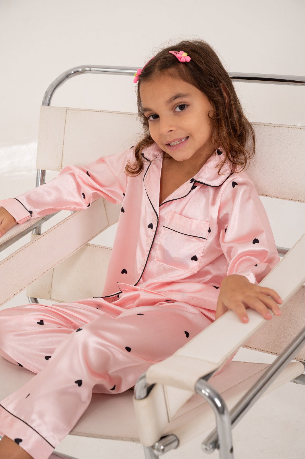 CAMISERO LARGO SATEN IMPORTADO ROSA CORAZONES - KIDS -