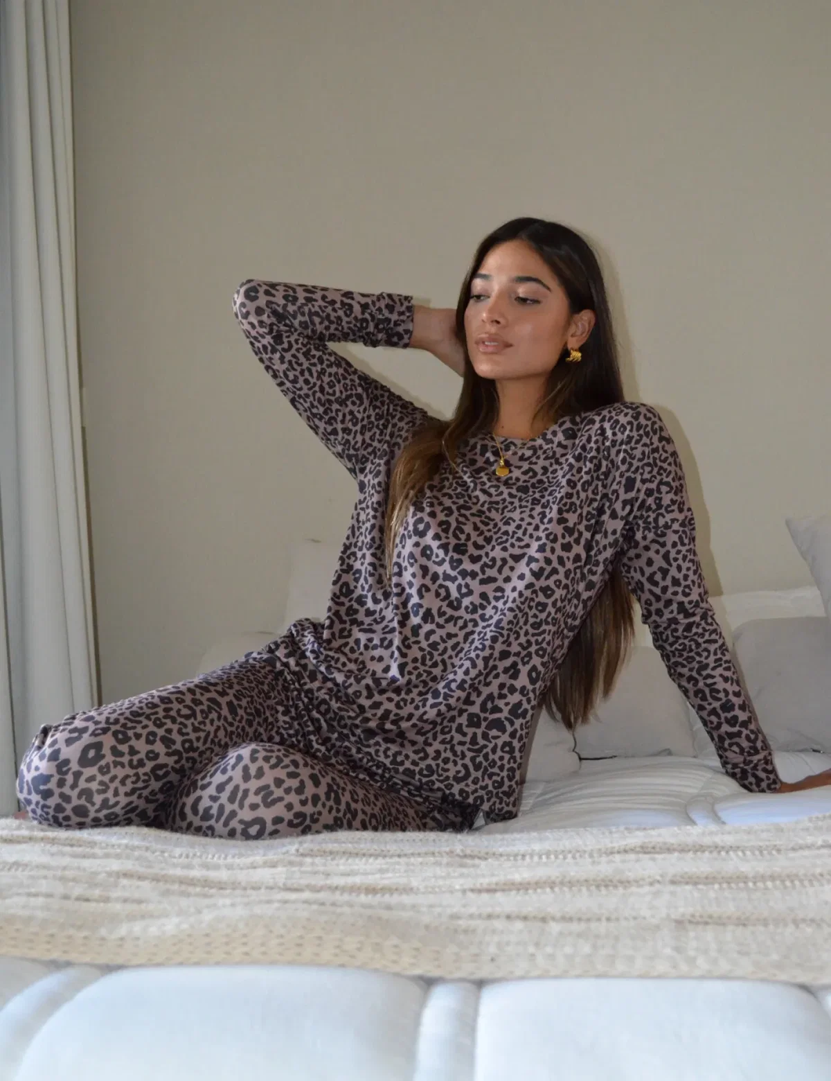 Pantalon babucha y remera mangas largas con puño y tajos a los costados. Modal soft.