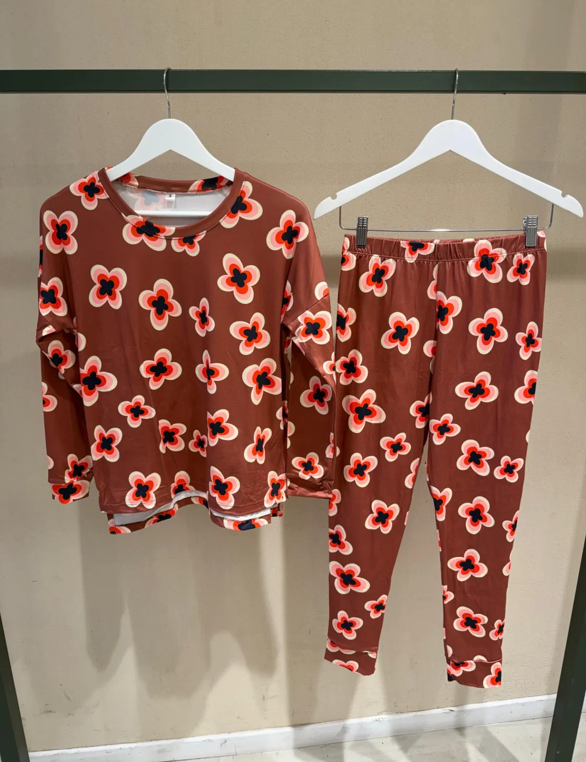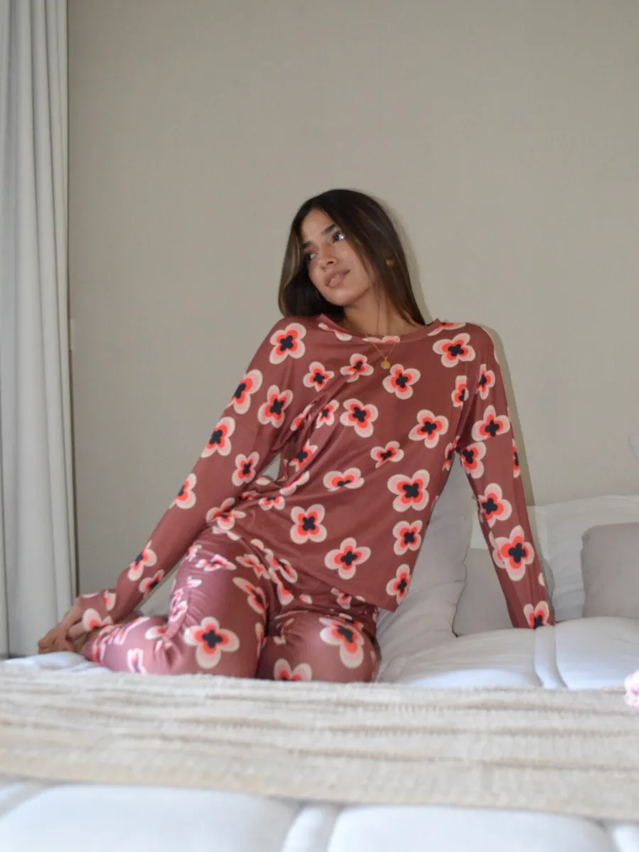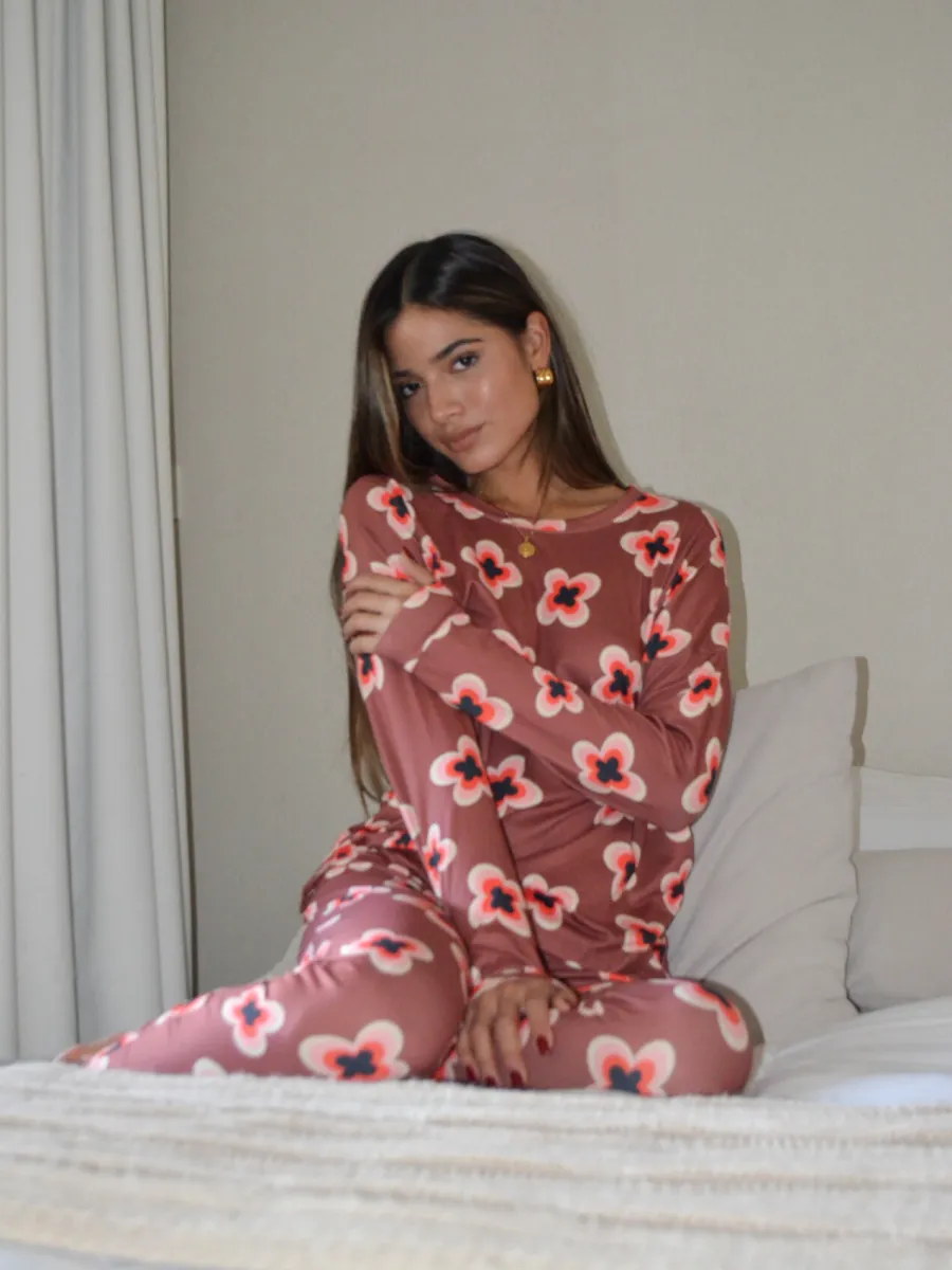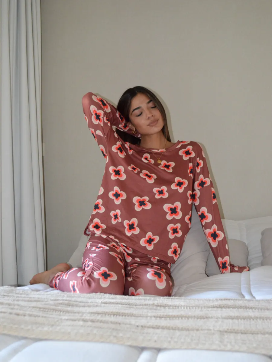 Pantalon babucha y remera mangas largas con puño y tajos a los costados. Modal soft.