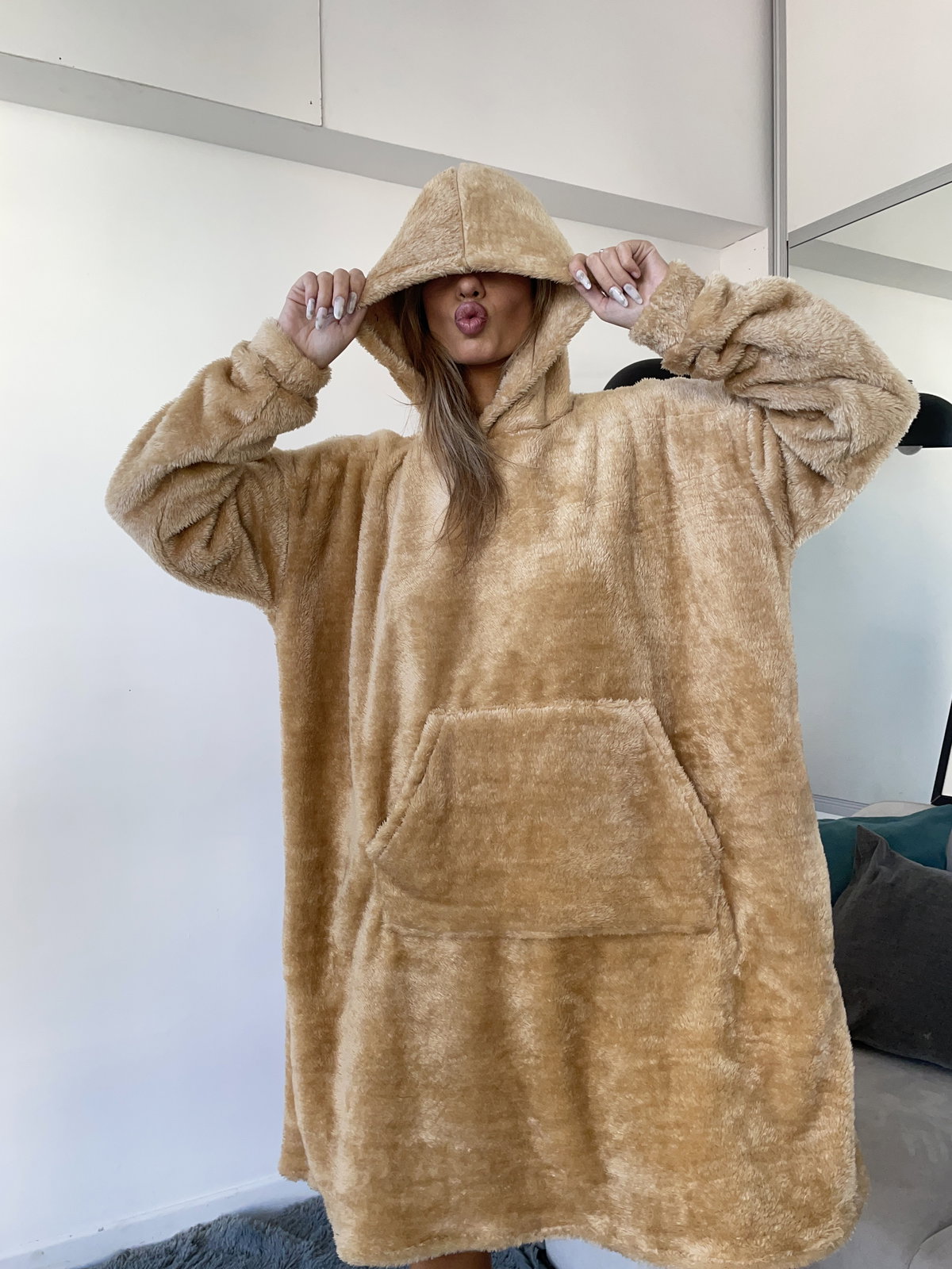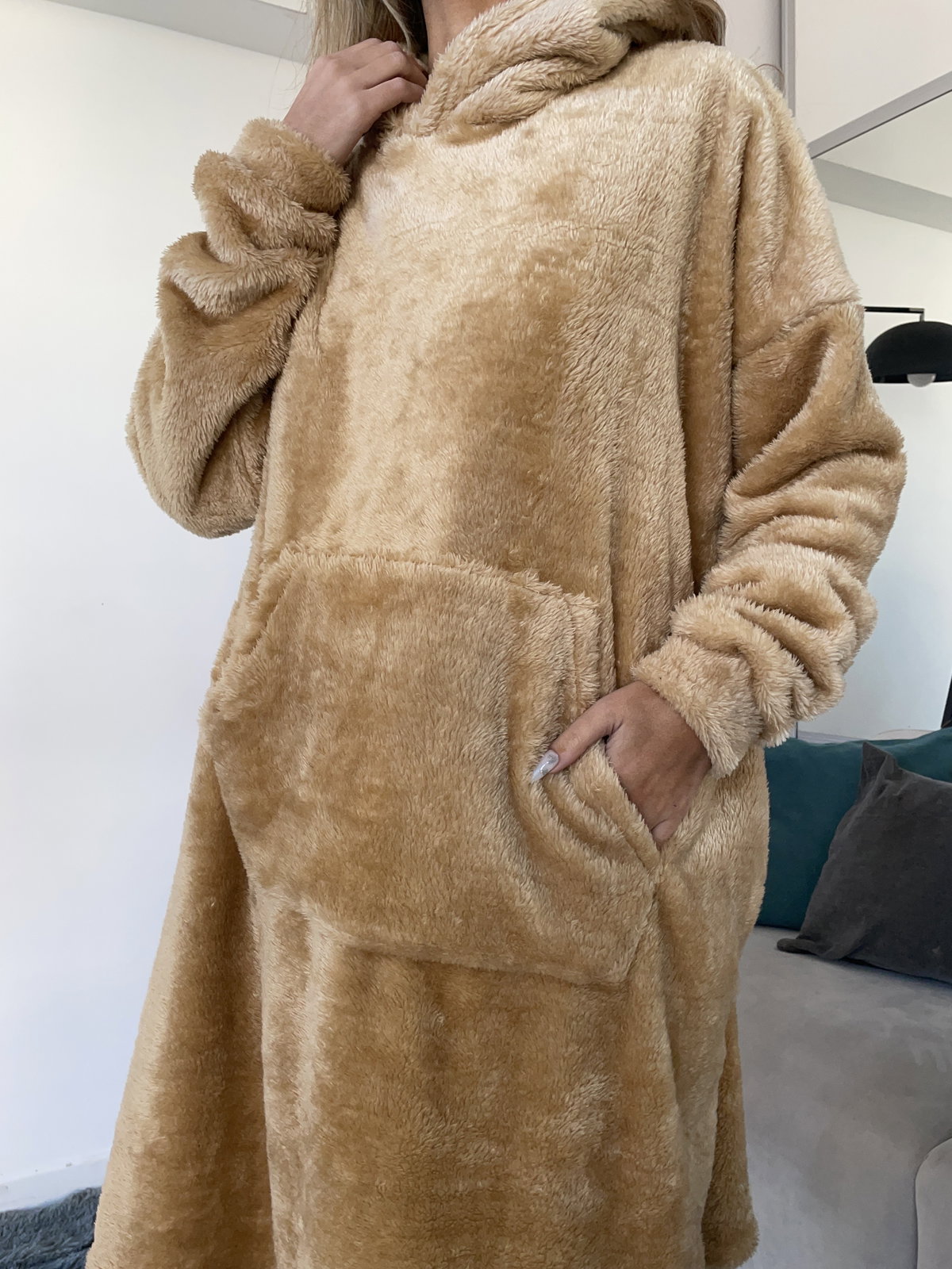 MAXI BUZO MANTA CORDERITO - CAMEL -