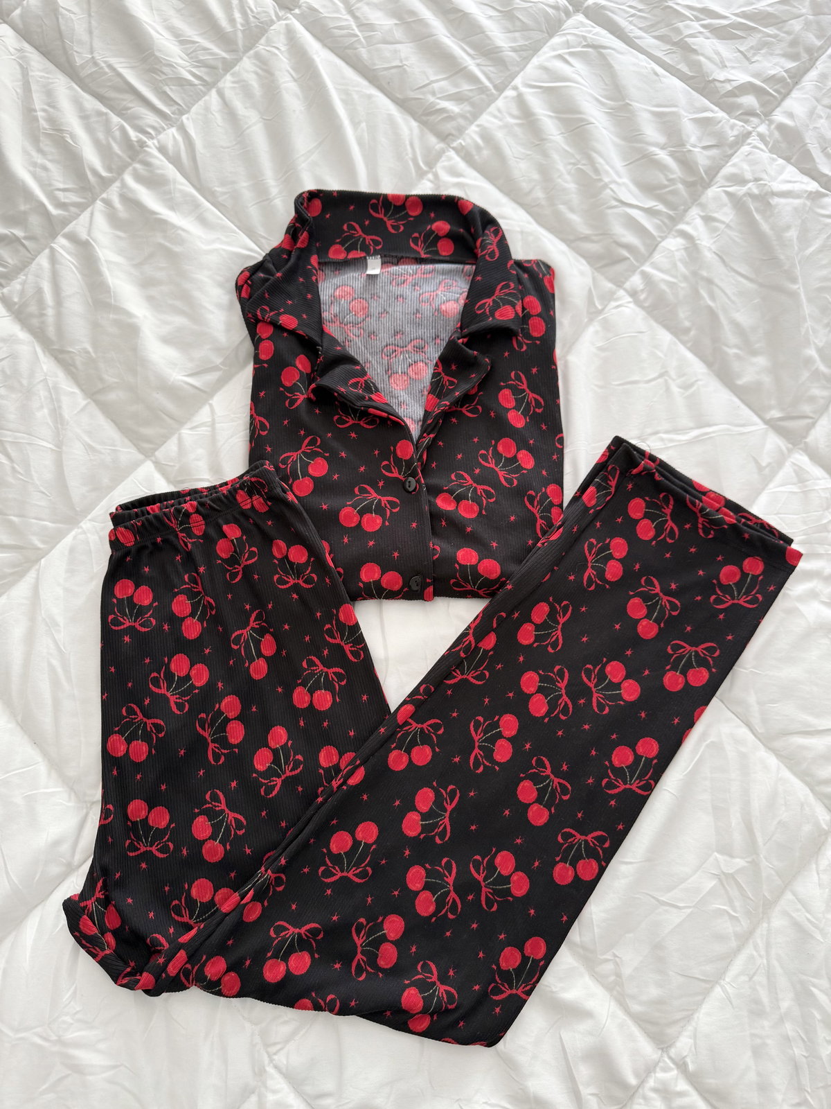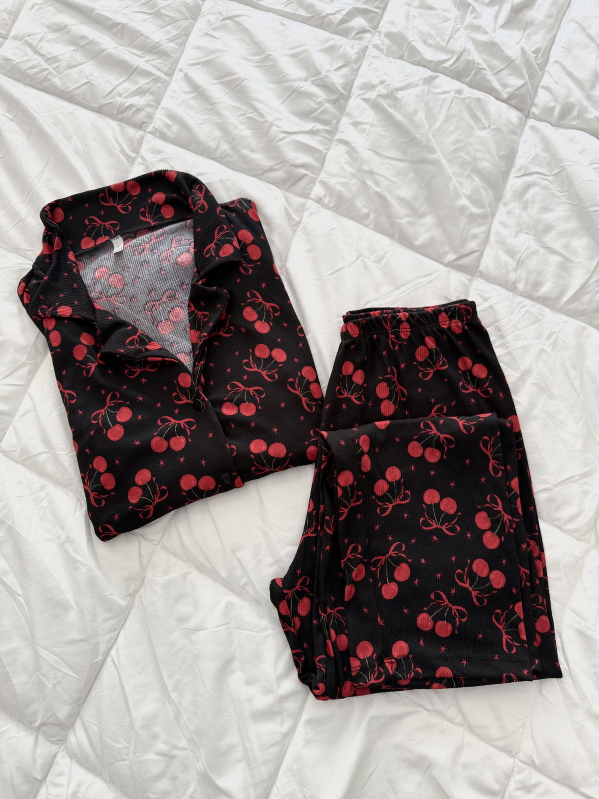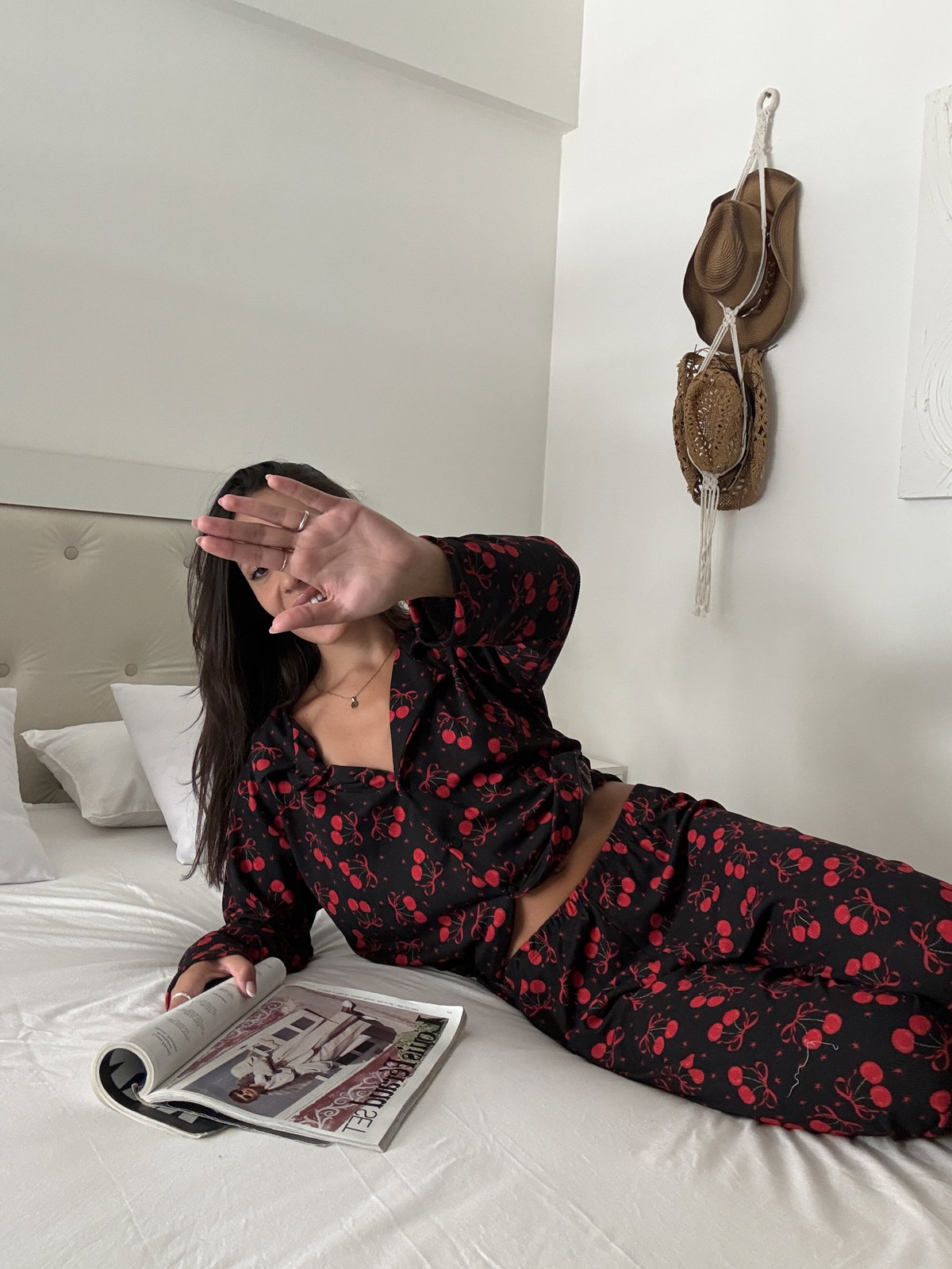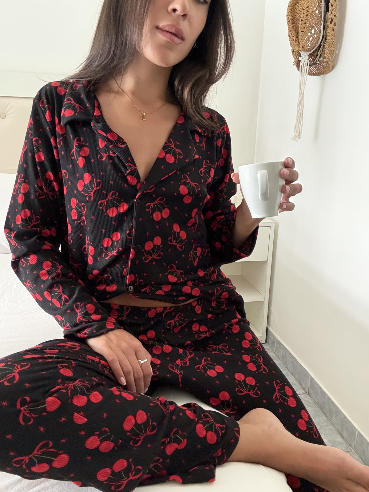 CAMISERO LARGO CHERRY NEGRO -MORLEY ESTAMPADO-