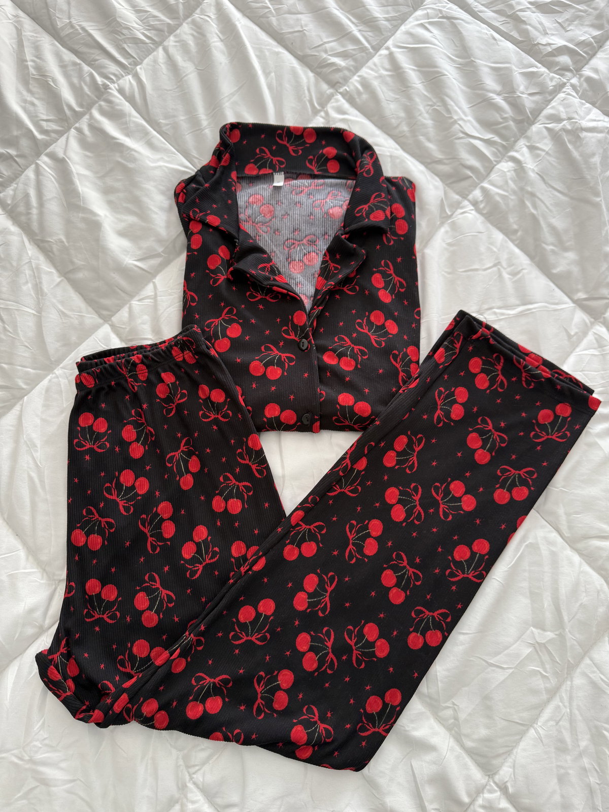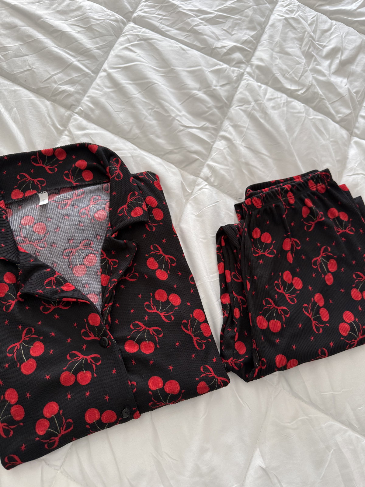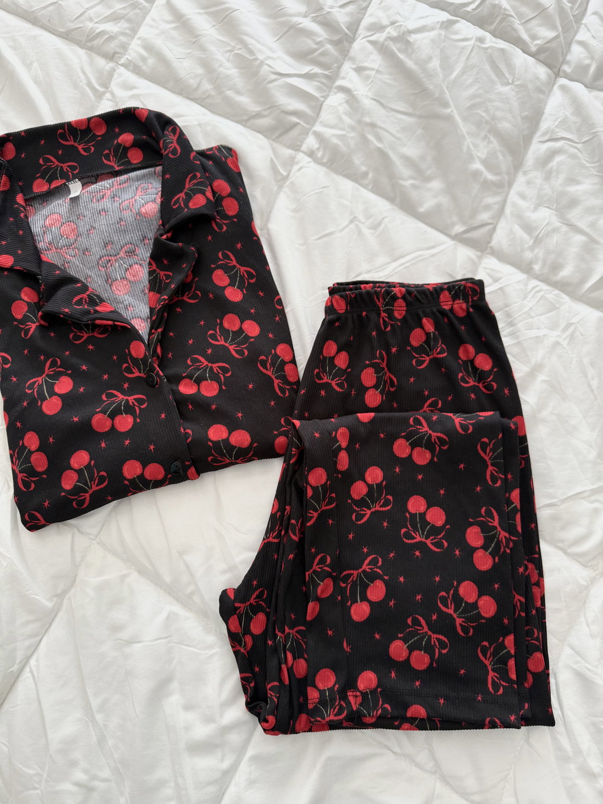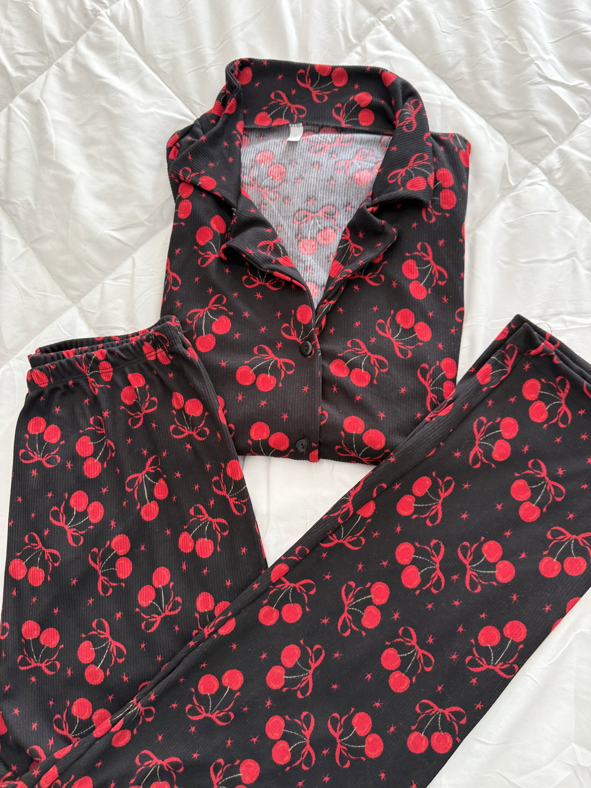 CAMISERO LARGO CHERRY NEGRO -MORLEY ESTAMPADO-