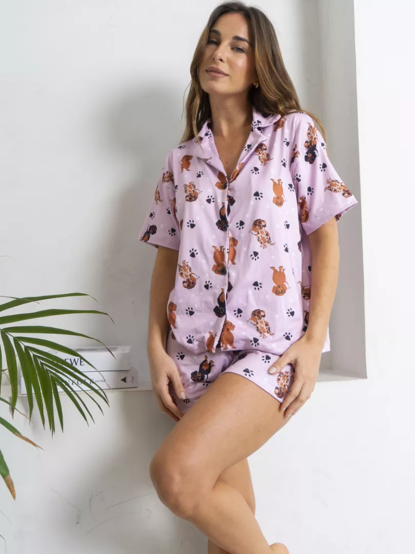CAMISERO CORTO PERRITO ROSA -MODAL SOFT-