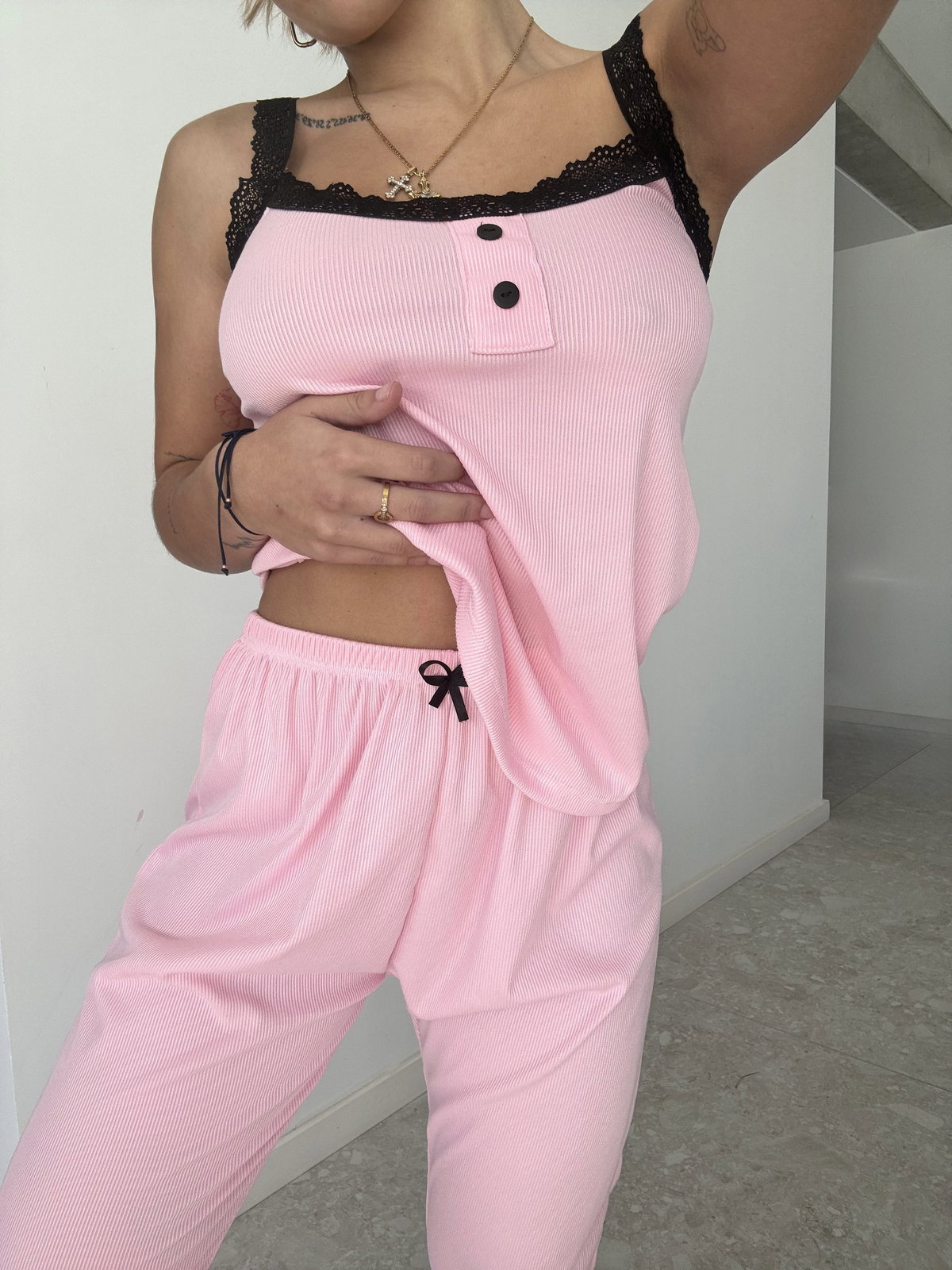 • Pantalón: cintura 32 cm, cadera 54 cm, largo 93 cm
