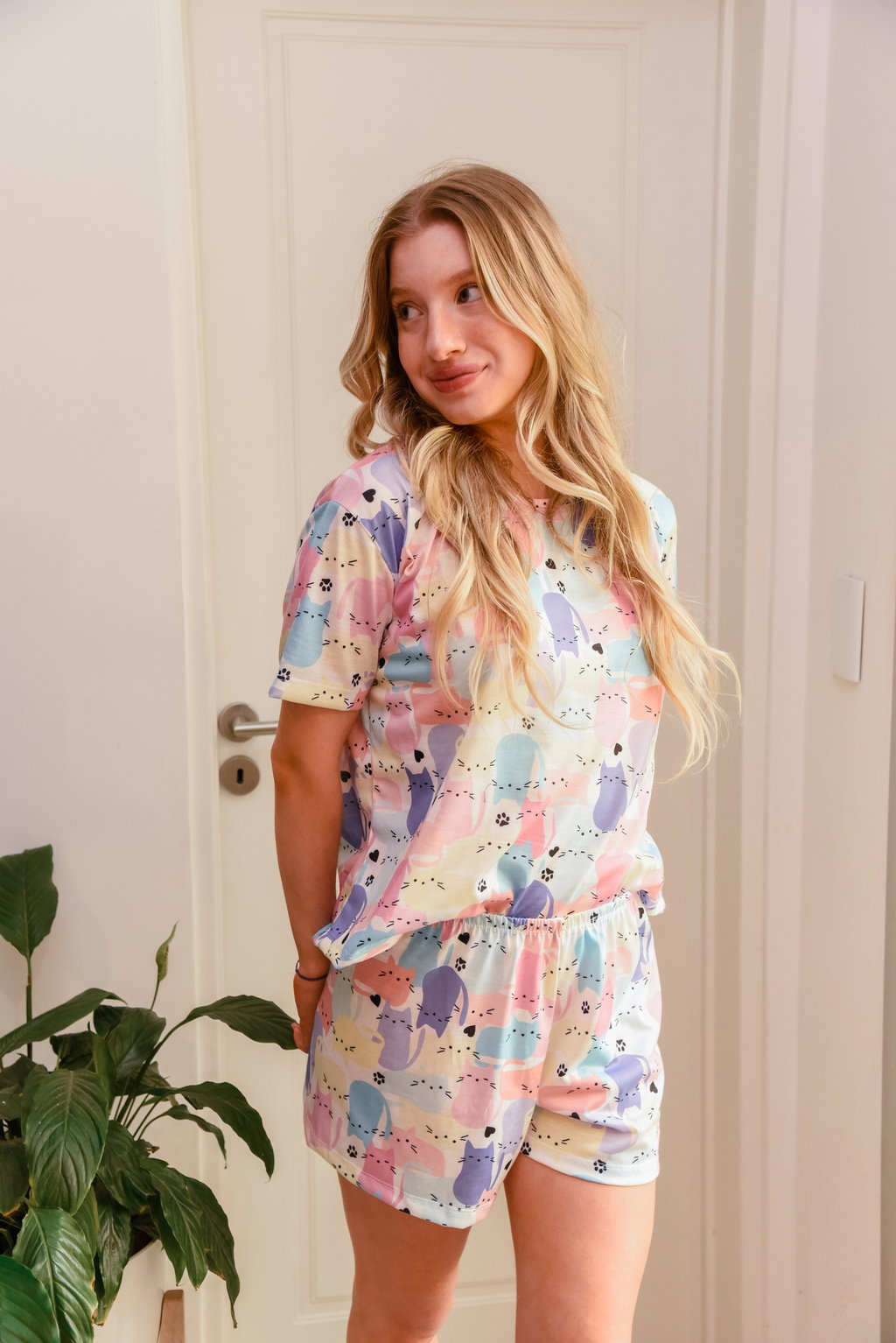 Pijamas cortos animados full print Gatito