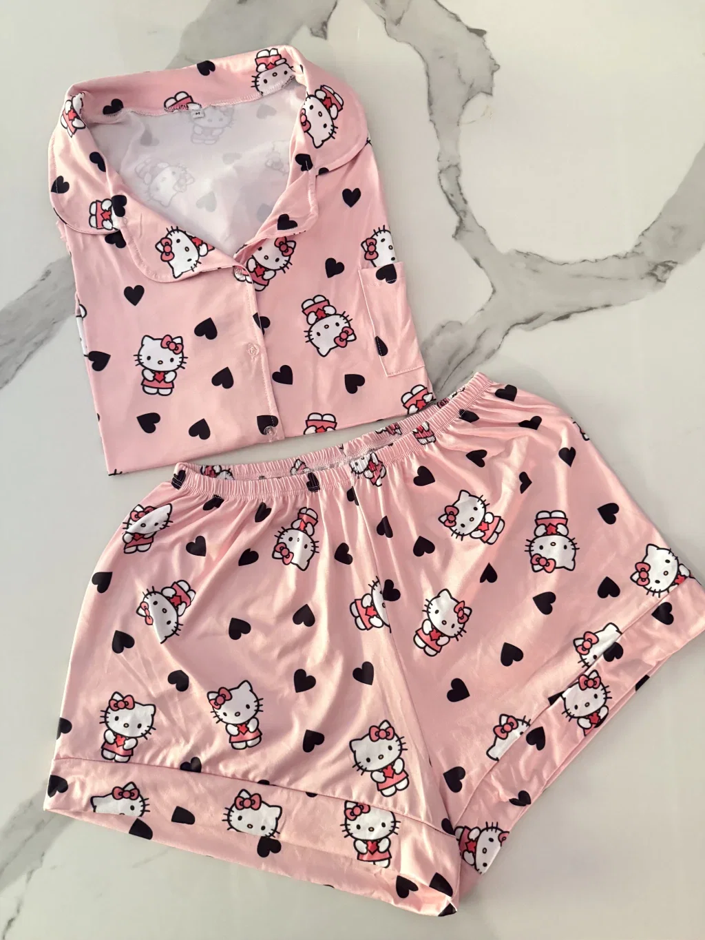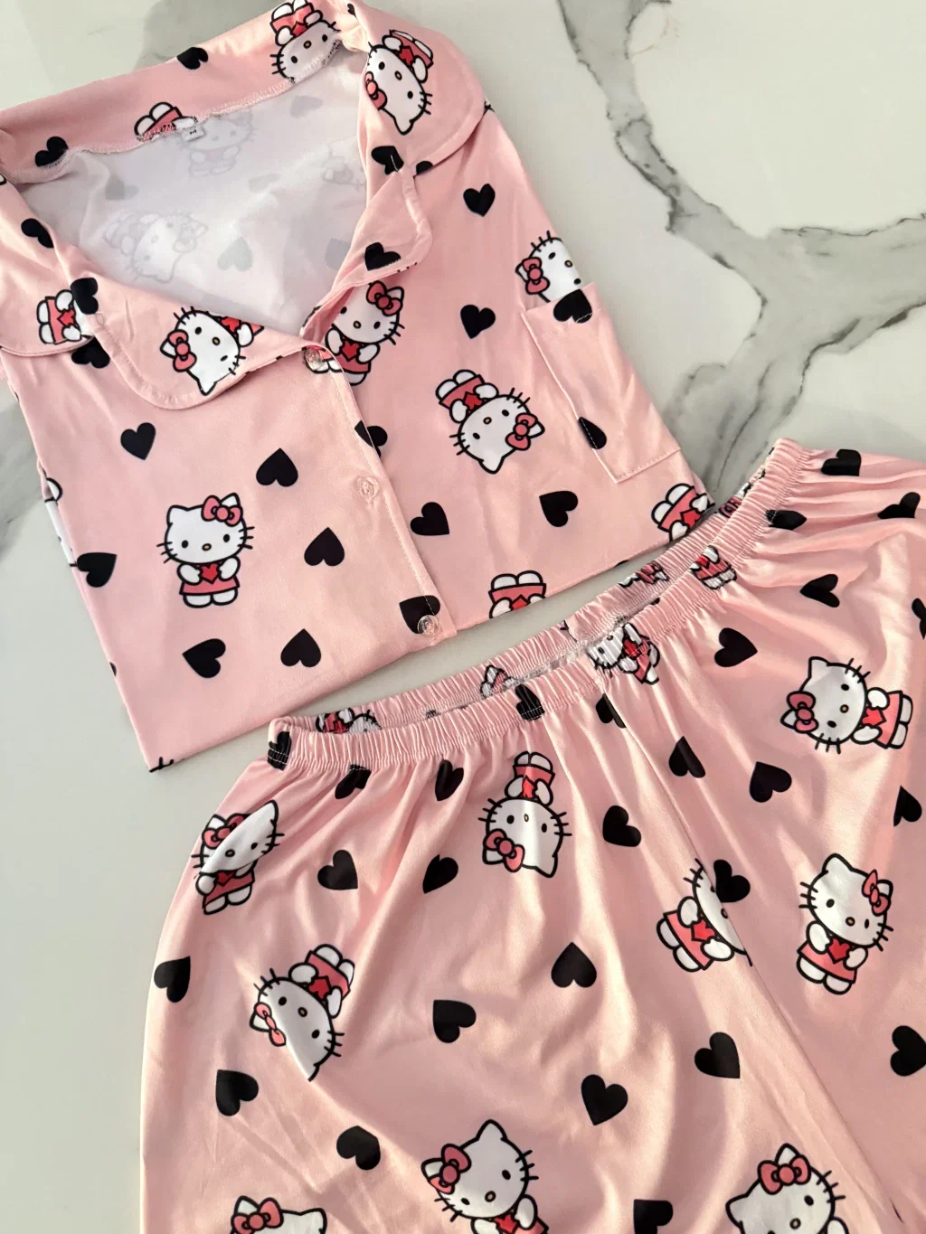 Camiseros cortos animado Kitty rosa