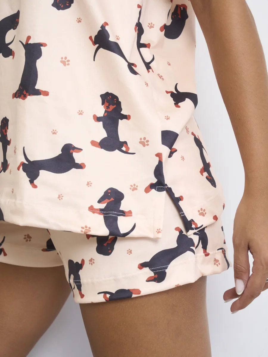 CORTO PERRO SALCHICHA BEIGE - MANGA CORTA -