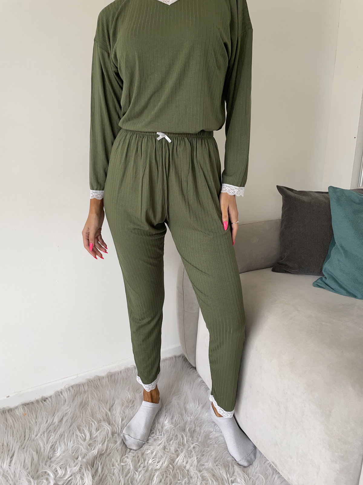 • Pantalón: Cintura 32 cm / Cadera 60 cm / Largo 94 cm