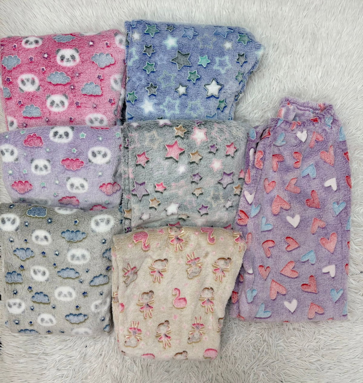 PANTALON POLAR SOFT LUMINOSO GRIS - ESRTELLAS ROSAS&BLANCAS -